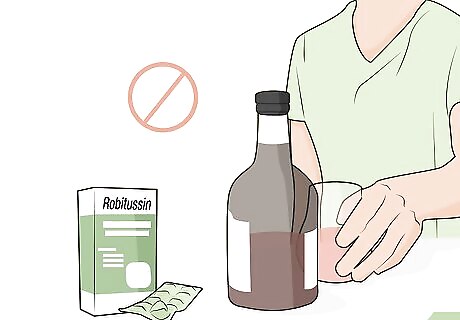 Don't drink alcohol 8 hours before or after taking Robitussin. Mixing alcohol and dextromethorphan can increase any drowsiness or dizziness you may feel after taking the drug. It may even cause sedation, which can be dangerous. If you suffer from alcoholism, talk to your doctor before taking Robitussin. Robitussin has a half-life of 4 hours, so it's safest to not take it within 8 hours of drinking alcohol since everyone metabolizes the drug differently.