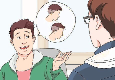 Explain how you will wear your hair every day. The way you plan to style your hair daily is extremely important information for your barber. Ultimately, they’ll need to know what you want to do so they can make it possible. Let them know if you plan to: Slick your hair back Part it down the middle Style it with hair gel in sort of a messy look.