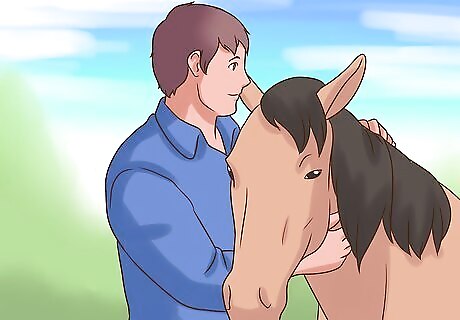 Be consistent. As when training any sort of animal, consistency is key. Once you start training your horse to neck rein, stick with it, using the proper technique outlined above each time. Don't make sudden changes in your training technique — remember that the horse won't ever be able to understand your logic for making the change, so it can easily become confused if you use inconsistent technique. Repeated inconsistencies can even cause the horse to learn "bad" behaviors. Remember — being consistent when you train your horse is just as much for your own benefit as it is for the horse's. If you plan on riding your horse, you'll want to be confident that it will react to your cues predictably, and the only way to ensure this is to train consistently. Keep your training sessions short, such as 30 minutes or less at a time. Otherwise, you might lose your horse's attention. Try to work with your horse for short training sessions 5 days a week to create consistency. End your training sessions on a positive note. For example, stop the session when your horse successfully recognizes a command. This will motivate both you and your horse to keep going.
