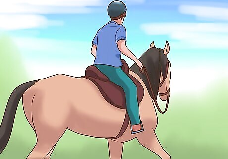 Start off at a gentle walk. Go to a safe, secure place and ask your horse to walk forward or in a large circle. Make sure you have plenty of space on all sides to move around.