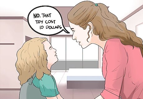 Don't buy your toddler whatever they want. While it can be fun to give your toddler a treat every time you go to the store, your toddler needs to begin to understand the importance of waiting and saving money. It is OK to tell your toddler that you don't have enough money to purchase something they ask for at the store. Explain that it is expensive by saying, "This toy costs ten dollars, but we don't have ten dollars to spend on this. If we buy this toy, we can't buy your brother his birthday present." Teaching your child patience and the value of waiting helps them understand the importance of not making rushed purchases. You can turn every day moments into "teachable moments." For instance, when your child has to wait in line to ride a carousel, talk with them about how sometimes you have to wait for what you want. Although this is not directly related to money, it instills an important lesson that applies to finances.