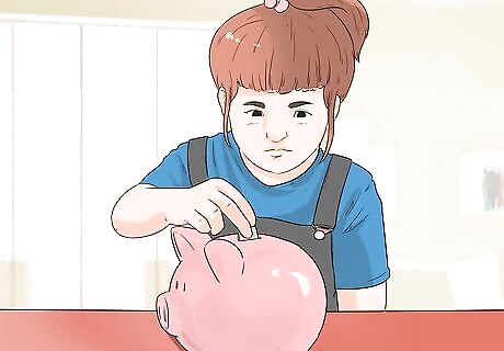 Help your toddler begin saving money. One of the most important money skills that some people never seem to learn is how to save money. Purchase a cute piggy bank for your child. If you can, choose a clear one or another clear container so that your child can watch their money accumulate. Consider giving your toddler a very small weekly allowance. For example, you might give your child a quarter or fifty cents. Your toddler can put that allowance into the piggy bank and save it. You can help them count it regularly. Be sure to explain that each week, there is more money than there was before. The more they save, the more the money grows. You can also give your toddler coins for doing household chores so that they can add them to their piggy bank. When your toddler asks for a toy in the store, set a goal together to save money to purchase it. If the toy is too expensive for the child to afford on their allowance, consider giving more money for household chores or "matching" the child's contribution to make the goal attainable.
