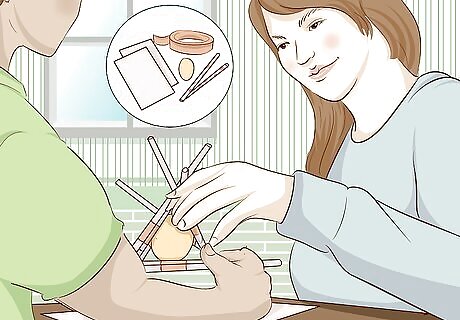 Assign small groups of students to create a structure for an egg. This is a team-building activity that also encourages other business skills like working hard to accomplish a goal. It teaches work ethic because each student must work hard for the whole group to succeed. Break students up into small groups, and give each one 2 pieces of newspaper, 4 straws, and 6 inches (15 cm) of tape to build a structure that stands on its own and is able to catch an egg. As part of the activity, students must come up with a name for their company (that's producing the structure) and the product (the egg-catching structure), as well as a mission statement and marketing campaign. Then students can complete a SWOT analysis and analyze the time they spent building, the amount of materials used, and salaries to determine the price they will charge for their product. At the end, students will present their findings. You can then drop an egg on each project from waist high. Each project that protects the egg survives to the next round, when you drop the egg from higher than before. Keep increasing the height each round until only 1 project is left.