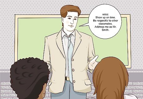 Establish professional guidelines for your classroom. One way to help students learn how to be professional is to expect it of them in your classroom. Set up the expectations at the beginning of the year, and require that they live up to them throughout the year. For instance, you could start with the following rules: Show up on time. Be respectful to other classmates. Address me as "Mrs. Smith." You can even make professionalism be a percentage of their grade. For instance, you could have them start out with a certain number of points. Then, each time they act unprofessionally, take away points from that grade for the semester.