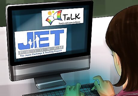 Sign up for an exchange program. If you're a current college student or recent graduate, get in touch with your school's study abroad or international education office. There are several well-established programs to choose from, like Teach and Learn in Korea (TALK) for South Korea and the Japan Exchange and Teaching (JET) program. They're a great way to get some experience abroad and share your knowledge base. For example, the JET program has Assistant Language Teachers (ALTs), Sports Education Advisors (SEAs) and other positions.