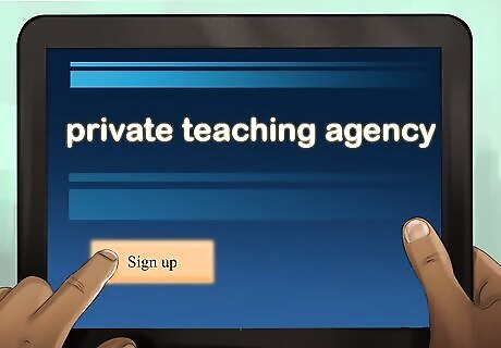 Sign up with a private teaching agency. Do a quick Internet search for agencies that hire people to teach English abroad. While you can do all of the prep work yourself, going through an agency will make it much easier to arrange things like visas, housing, and travel. A certificate in Teaching English as a Foreign Language (TEFL) can be helpful, but it's often not necessary. Areas with a high demand for native English speakers to teach include: South and Central America (Argentina, Nicaragua, etc.) Asia (Cambodia, Thailand, etc.) Russia Europe (Spain, for instance).