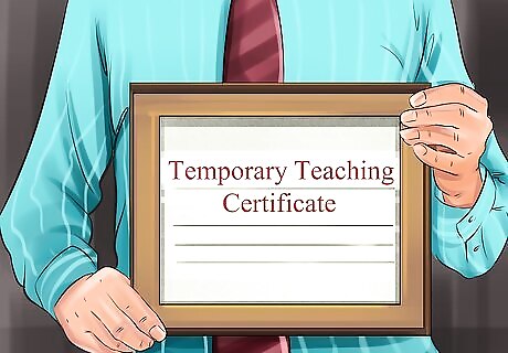 Get temporary teaching certification. In other areas, if you plan to become a teacher you can start teaching even before you have your complete credentials. In these locations, you can get a temporary certificate if you have a bachelor's degree. However, you must enroll in an approved program and earn your full certificate in a certain amount of time. Teacher prep programs are available to help people who want to get a full teaching certificate after already completing an undergraduate degree in a non-education area. Check with your local school district or college or university for details.