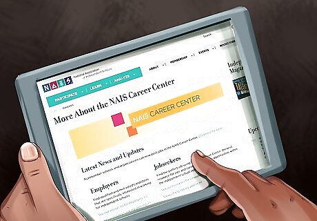 Teach at a private school if you have another type of degree. Look for postings for jobs at private schools and online through the websites of organizations like the National Association of Independent Schools (NAIS). In many cases you don't need a degree in education. Instead, a bachelor's degree or higher in a subject area (like English, Biology, or Italian) can be enough. Job postings will generally be tied to the school calendar. For instance, there might be more openings in the spring or summer, before the start of a school year. Some private schools will want their teachers to have a Master's degree or higher.