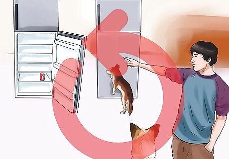 Teach your dog to open the refrigerator at a distance. Once your dog knows how to open the refrigerator, you want him to open it on command at a distance. First have him obey the command while you stand in front of the refrigerator. Then move farther away so he has to walk to the refrigerator to obey the command. Keep moving farther from the refrigerator until you are in a different room and out of eyesight of the refrigerator.