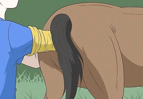 Do not use the 'nail test.' The 'nail test' is a myth on how to determine the sex of the unborn foal. To perform the test, you would take a section of hair from the mare's tail and tie a nail to it. You would then hold the section of hair near your mare's hips. The myth is that the foal is a male if the nail swings back and forth in a straight line, and female if the nail swings in a circular motion. This is not a scientifically accurate method, and should not be used to determine the sex.