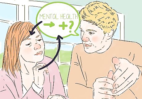 Talk about mental health problems. If you also struggle with mental health issues, you can share these with your partner and how they affect you and your addiction. You may never have mentioned mental health problems before, so it can be scary to bring them up. Yet, it’s important for your partner to understand what you are going through. Your mental health may influence your addiction, and vice versa. Ask your partner to support you in your struggles with mental health. This may mean helping you find a therapist, going to a treatment center, or getting medications and taking them regularly. If you suspect you may have mental health problems yet have never received a diagnosis, ask for help in seeing a therapist or psychologist to receive an official diagnosis and treatment.