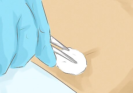 Apply pressure and a bandage on the incision. Put light pressure on the insertion area to stop the bleeding. Then, place a clean bandage on the area to keep it clean and help it heal.