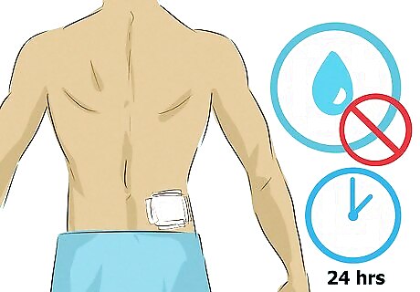 Keep the bandage dry for 24 hours. Do not wet the bandage in the shower or bath, as this can negatively affect the incision. Wrap the bandage in plastic wrap to keep it from getting wet if you do bathe or shower. After 24 hours, it is okay for you to get the area wet.
