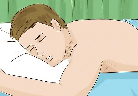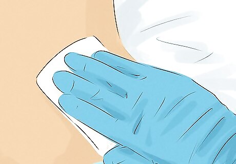 Ask the patient to lie down on their abdomen or side. Drape a cloth over their body so the incision area is exposed on the front or back of their hip bone.