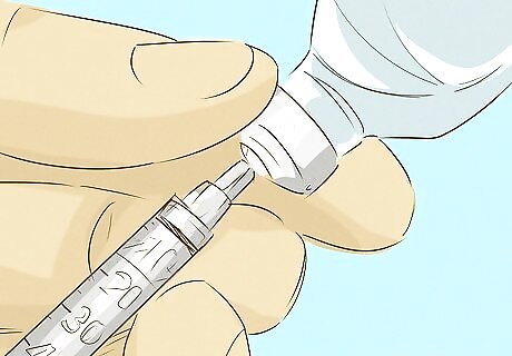 Make a small incision and perform a bone marrow aspiration. Use a scalpel to make a small incision on the marked area and place a needle with a syringe into the incision. Then, withdraw the liquid part of their bone marrow into the syringe for testing. Let the patient know they may feel a small sharp pain or stinging in the area as the bone marrow is being removed. You may take more than 1 sample, requiring separate needles for each, for testing. In rare cases, you may not be able to withdraw the bone marrow from the selected spot and will need to find a different spot for the test. Let the patient know if this is the case and adjust the area accordingly.