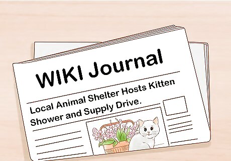 Issue a press release to local media. Three weeks before the event, send a press release that describes the event to your local newspapers and news channels. Send another press release three days before the event. At the top, title the press release with a concise headline, such as, "Local Animal Shelter Hosts Kitten Shower and Supply Drive." Include the event's location, date, time, and a brief description of the shower. Be sure to list suggested donations. Include contact information for the shelter and shower organizer in case a media outlet has questions or wants an interview.