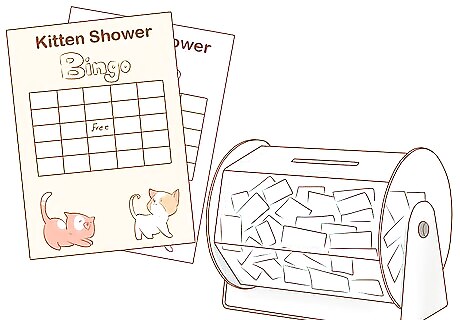 Set up a foster and adoptions information station. In addition to entertainment, you should set up an informational table to educate guests about fostering and adopting kittens. Have members of the shelter staff volunteer to coordinate this station. If you elect to offer adoptions the day of the shower, have around ten kittens on hand in a play corral or pen at the shower. Remember that you’ll need extra volunteers to keep the kittens. Have the shelter ask current pet foster parents to help at the foster table and provide information about the fostering process.