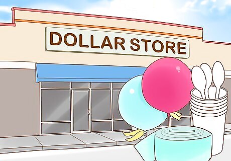 Purchase decorations and supplies from the dollar store. Buy balloons, streamers, tablecloths, cups, plates, napkins, and other items from a dollar store to keep your budget low. You should be able to decorate and supply the event for less than $100 (US). You can also see if restaurants donating food can also supply serving-ware and napkins.