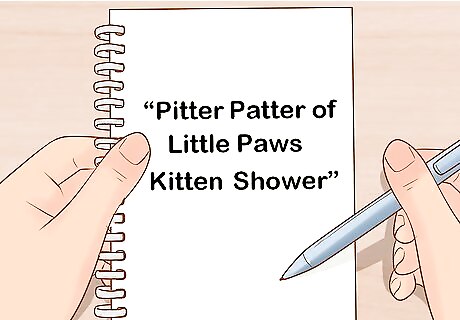 Give your kitten shower a catchy name. A great name will help grab attention and encourage attendance. Go with a cute, clever, or seasonal name and theme to spark the interest of your community. For example, the Jacksonville Humane Shelter has held “Pitter Patter of Little Paws Kitten Shower” and “Purrs and Paws Kitten Shower.”