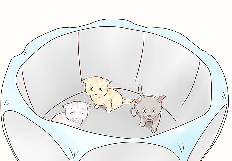 Set up a donations station. You’ll need to designate a spot for people to place donated kitten supplies. A playpen is a cute option and, like the kitten shower itself, it’s a fun reference to a baby shower. See if a volunteer has a playpen they can lend for the day. You can also look for one at a local thrift shop.