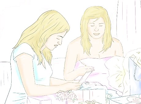 Be a good assistant. When the bride opens her gifts, have a pen and paper handy. Sit next to her and write the name of the person who gives her each gift. This will be a huge help to the bride when she writes her "thank you" notes. In fact, many brides can't thank anyone without this list!