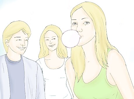 Plan some games. Silly games are essential to any good, traditional shower. The naughtier, the better! Try one of these: Stuff It: Before the party, sit down with the groom and ask him a list of questions, preferably ones the bride may not know. Then, at the party, pass the questions around the room, having each guest ask the bride one. If she gets it wrong, she must stuff a piece of bubble gum in her mouth. Her answers will become so messy, you'll have the whole room laughing. If the mother of the bride or groom is present, take caution (depending on her personality). Stud Muffin: Before the party, obtain a picture of the groom. Buy balloons. Also gather photos of sexy, hunky men. Roll the pictures up tight and tie with a ribbon or rubber band. Stuff one into each balloon and blow up. At the party, each woman has to grab a balloon and pop it. Whoever gets the real hunk—the groom—wins a prize! Don't go into overkill. The gals (and maybe guys?) will be totally content eating, drinking, and being merry.