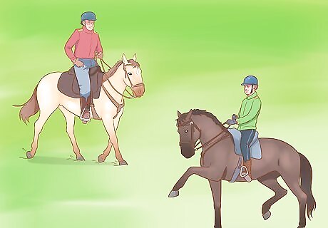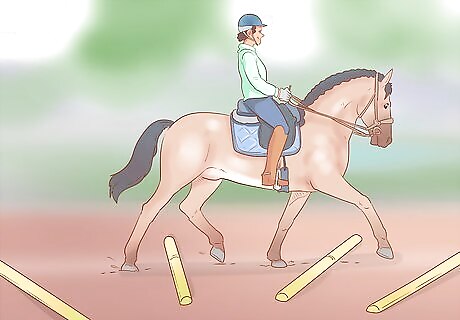 Include variety in your training to keep your horse sharp. Horses can get bored with routine. Mix things up by finding different ways to spend time together. You can take trail rides or practice low jumps in place of a more focused training session.