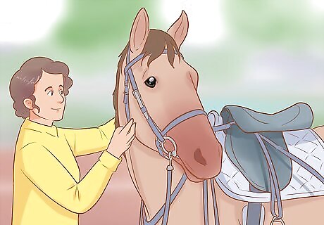 Choose a bridle and bit that your horse will tolerate. By the time you start training for dressage, your horse should be used to being on the bit. But that doesn’t mean that all bits are the same. Try some different ones to see which your horse responds well to. Some horses prefer a softer bit, while others require a firmer bit. For most horses, a double-jointed bit works best for dressage training.