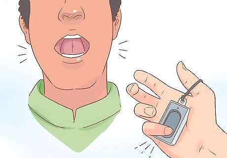 Cluck the horse forward with your mouth or a clicker. Horses respond well to verbal cues. Make a clucking noise with your mouth as a signal that you want your horse to move forward. Keep the volume and length of the cluck consistent throughout training so that your horse doesn’t get confused. Some people prefer to use a clicker instead of verbal clucking. You can purchase a clicker online or at a tack store. Simply click it instead of clucking when you want your horse to move. It doesn’t matter whether you click or cluck.