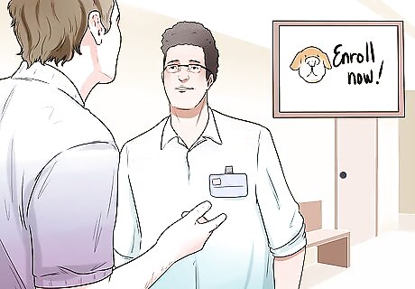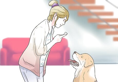 Enroll the dog in obedience classes. Another option (if available) is enrolling the dog in “fun” classes, where dog training experts will help you with a stubborn dog. You could also hire a dog trainer to come to your home. Check with your local veterinarian for references. Try using a clicker with the dog. You need to associate your clicker with a treat, so your dog knows that a reward is waiting when you use the clicker and say a command.
