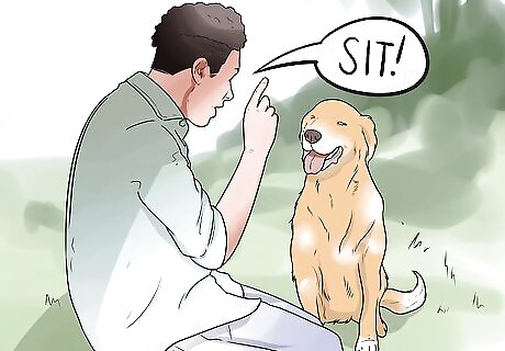 Start with the easiest commands. The easiest command to teach is "sit." Once they learn a command, the others will come a little easier. They will start to realize that will get praise and a treat if they can figure out what you are trying to tell them. Use audible and visual commands. Say "sit" and make some sort of hand gesture. Make sure to do the same thing every time or you will confuse the dog and make the process longer. In the beginning, reward the dog if it gets close to sitting. Eventually you can work your way to a full sit. However, once they execute a full sit, you should not reward them for a half-hearted sit. Think of ways to break up a trick or command to make it easier for the dog to learn. Don't make the dog roll over for the first trick or it will be too complicated.