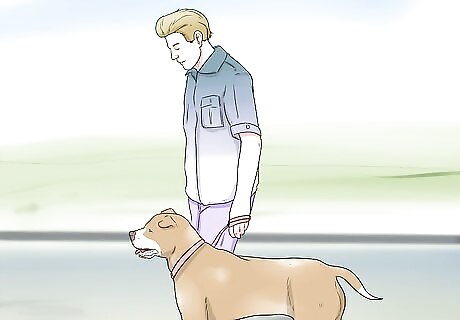 Train your dog while walking him or her. You can establish control with a dog while walking the dog with a leash. Don't let the dog take the lead or go off leash. Whenever you train a dog, she or he is training you. People running after their dog on a long leash is an example of a well-trained human to a dog. It is a game of patience, and the more patient one wins, and the less patient one loses. A tired dog, though, might be easier to train at home when you get back.