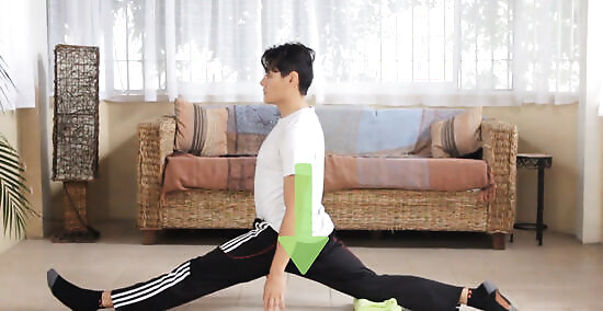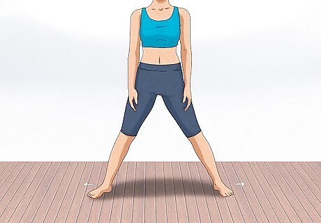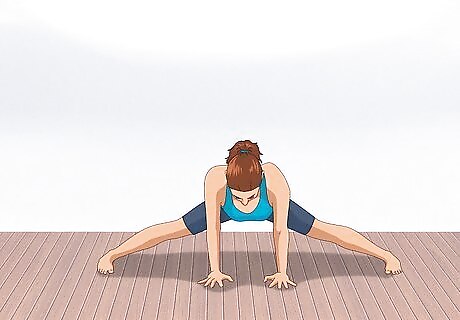 Slide your feet wider apart very gradually. Keep breathing and focus on relaxation as you get lower. Let your hips sink down toward the ground as your feet get wider apart. Keep sliding this way until you’re in the widest stance you can make without needing your hands on the ground to support yourself.