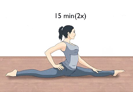Try to stretch and practice the splits twice a day for about 15 minutes. Consistency is the key to mastering the splits quickly, so set aside time to warmup and stretch daily (or at least 4 times a week to see progress). If you’re already fairly flexible, you may be able to do the splits in a week with fewer stretching sessions than if you’re inflexible or a beginner. If you feel sore, take a day off of stretching to let your muscles recover. If you try to push through the pain, you could injure yourself and delay your splits. If you’re able to stretch more than twice a day, go for it!