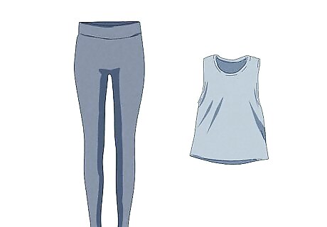 Wear comfortable, athletic clothes that stretch along with your body. Choose loose or baggy, pants, shorts, or shirts, or go for stretchy materials if you prefer something form fitting. Wear socks, too—your feet will slide easily across the floor, making it simpler to get into the splits or do certain deep stretches. Make sure you’re comfortable in whatever you wear. You’ll be putting in a lot of practice, so it’s important to feel good. Wearing baggy or stretchy clothes will also prevent your pants from ripping once you eventually hit the splits.