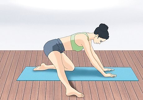 Work on a kneeling adductor stretch to loosen your groin muscles. Stand with your feet wider than your shoulders, then come down onto your right knee, fully extending your left leg out to the side. Keep your hands on the floor in front of you for support. Sit back onto your right leg until you feel a stretch on the inside of your thigh. Hold the stretch for 30-60 seconds, then repeat on the other leg. Your adductors are the long muscles on the inside of your thigh that pull your legs in toward your body. Loose adductors are essential!