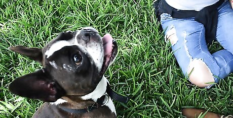 Give your dog exercise. Make sure that your new dog gets 30 minutes to an hour of exercise every day. To keep it exciting, try taking your dog out to a fun place, for instance a park, a lake, a pet store, or another place where dogs are allowed. While walking your dog, don't let your dog off the leash and make sure that the dog’s collar and leash are secure. A new dog is likely to run away if it gets loose, so be cautious at first.