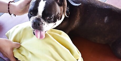 Provide items with familiar smells. When you bring a new dog home, bring along something that has its smell on it, such as a blanket, toy, or other item it has used. This smell will help the dog feel comfortable and calm as it adjusts to its new life. That way, even after you give the dog a bath, it will still have something that smells familiar. Ask the person you are dealing with during your dog adoption for an item that you can take with you, even if it's just a small toy. If your dog doesn't have an item like this, that is fine. However, it's a nice thing if it does.