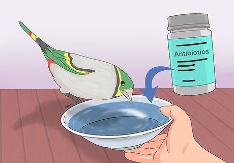 Treat any secondary infections with antibiotics or antifungals. If your finch displays skin lesions, lung infections, or sores around its eyes, treat these infections with an appropriate antibiotic. Some skin conditions will be healed by an antifungal. Speak to your veterinarian to see which treatments will be most effective for your finch. Secondary infections often lead to infected birds’ deaths. If you can control these secondary infections, you’ll increase the finch’s likelihood of survival.