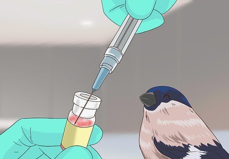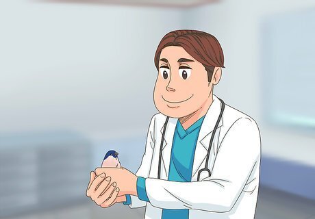 Take the sick finch to a veterinarian. Once you have quarantined your infected finch, call your veterinarian as soon as possible. To diagnose your finch, the veterinarian will need to collect a swabbed tissue sample, likely from a sore (if your finch displays any). Before you bring the finch inside, ask if you can take it into a private room as to avoid potentially infecting any other birds in the clinic.