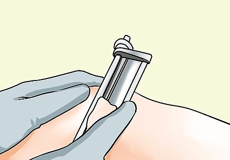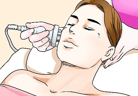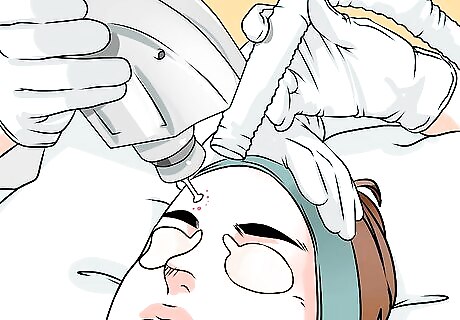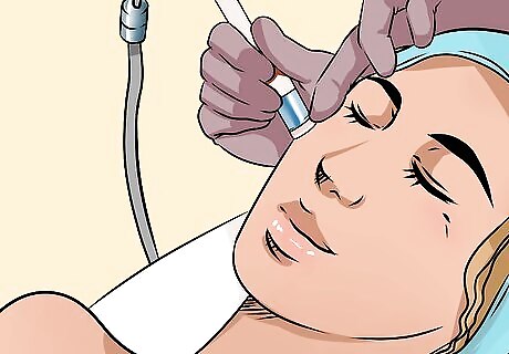 Replace a scar with new skin underneath with microdermabrasion. The procedure exfoliates the scarred skin by blasting tiny crystals at it. Then, as the brush moves across it scrapes off the scar to reveal new skin underneath. It’s very much like dermabrasion, except that it is tougher, removing a thicker layer of skin to ensure scars and other bodily marks are gone for good. Microdermabrasion exposes a fresh layer of skin and prompts the body's natural regenerative process, which makes it a helpful way to polish your skin and potentially help with acne scars, uneven skin tone, hyperpigmentation, and more. Microdermabrasion can also be done at home through kits sold at drugstores or grocery stores. These usually contain a brush and cream you can manually use to scrub scars (and other blemishes) away.