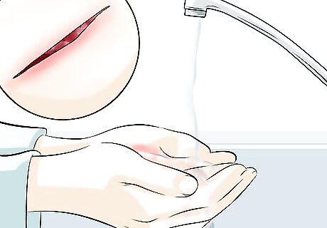 Clean it carefully. Run the wound under water, or gently wipe it with sterile cotton. If wiping, ensure to wipe from the center of the wound outward. Do this daily, especially, in the early stages of an acquired injury to speed up the scabbing process.