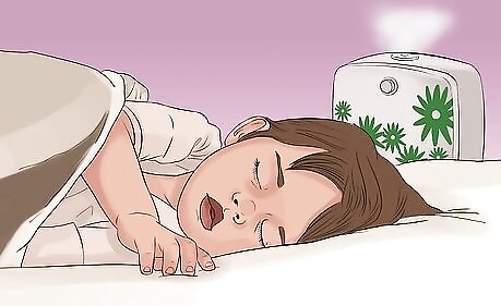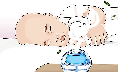 Put a humidifier in your child’s room. Humidifiers are available at many department stores and are easy to use. Cool-mist humidifiers decrease the pain of a sore throat and alleviate nighttime coughing because they keep the inside of your child’s nose and throat moist. If you don’t own a humidifier, replicate the moistening action in your bathroom. Close the door, turn the hot water on in the shower, and let the room steam up. Relax with your child in the steamy room for about 20 minutes. The soothing and moistening actions will make breathing easier and more comfortable.