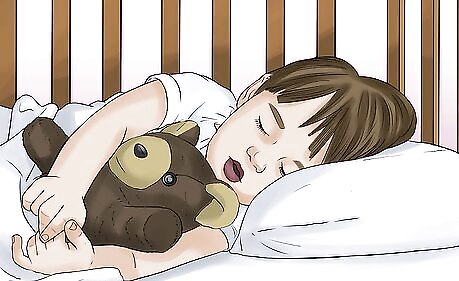 Prop your child up on pillows when they sleep. Coughing often gets worse at night because mucus accumulates in the throat as your child is lying flat. Elevate your child’s head with a few pillows placed under their back, shoulders and neck. This can make it easier for them to sleep. For babies, prop the mattress up with pillows to avoid pillows in the crib, which can pose a suffocation risk.