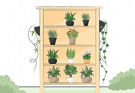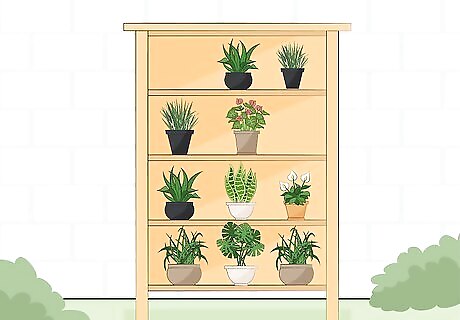 Place the bookshelf in a spot that gets at least 4-6 hours of sunlight. Put the vertical garden somewhere that works for most (if not all) of the plants’ needs. Pick a spot that’s spacious and easy to get to so you can water the plants when you need to. Make sure it's in an area that gets at least 4 to 6 hours of direct or indirect sunlight to keep your plants healthy and happy! If you're putting it outside, don't put it near your driveway or a child's play area—anywhere with heavy foot traffic is a bad idea because it may accidentally get knocked over.