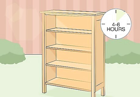 Wait at least 4 to 6 hours for the paint to dry completely. After the final coat is on, check the time so you know when you’re ready to start gathering or potting your plants. If the bookshelf is inside, open a nearby window or set up a fan to help the paint dry faster. The paint will be dry to the touch after just 1 or 2 hours, but it may still be prone to chipping or smudging so it’s better to wait a full 4 to 6 hours.