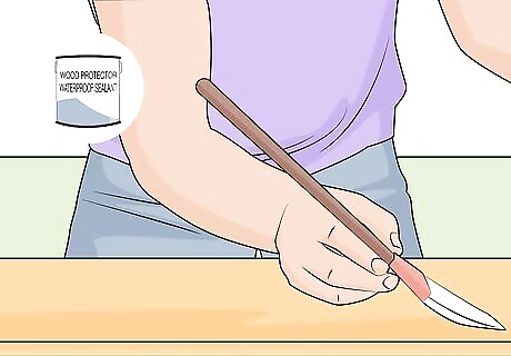 Protect a wooden outdoor bookshelf with a waterproof sealant. After the paint has dried completely, apply a water-based polycrylic sealant with a wide paintbrush. If you’re using sealant spray, hold the canister 6–8 inches (15–20 cm) away from the surface and spray it on in long, even strokes. Let it dry for at least 4 to 6 hours before you start to decorate the shelves with plants and other knick-knacks. You can buy polycrylic sealant from any home improvement or hardware store. The sealant will look a little cloudy at first, but it’ll dry clear to show off your beautiful paint job! You can also use an oil-based sealant like polyurethane but it’s not a great choice because it emits toxic fumes.