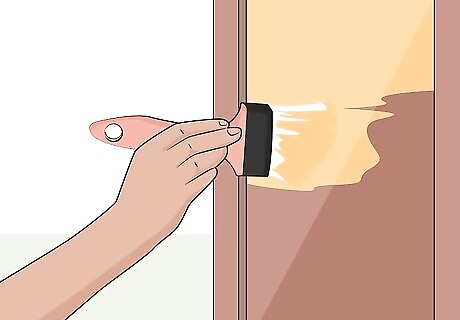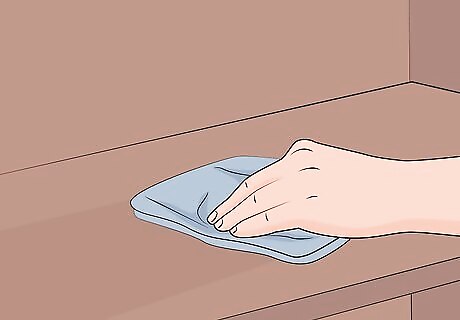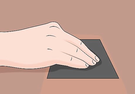 Sand down a hardwood bookshelf if you want to paint it. Use a 150, 180, or 220-grit sanding block to get the shelves smooth to the touch. Hold the block firmly in your hand and move it back and forth along the grain (not side to side) with even pressure. Wipe away the dust when you're done. If you don't have a sanding block, you can also cut a rectangle of sandpaper and wrap it around a small piece of wood. If you have an electric sander, follow the directions in the instruction booklet about how to load it and use it safely. A metal bookcase usually doesn’t need to be sanded. However, a good sanding or scrub-down with steel wool can get rid of any rusty spots.Warning: Wood dust can cause respiratory issues and irritate your eyes, so only sand outdoors and always wear a mask and protective eyewear.