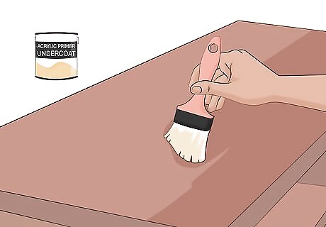 Apply acrylic primer if you’re painting it with acrylic paint or keeping it outdoors. Grains of the wood can show through the final coat of paint later on, so use an acrylic primer to ensure your paint job looks great and lasts a long time. Apply it in long, even strokes with a wide paint brush and let it dry for at least 4 hours before adding your first coat of paint. You can find priming spray at any home improvement or hardware store in the same aisle as the paint-on primer. You don’t have to use a primer if you’re keeping your bookshelf inside, but it’ll help the acrylic paint stay on longer without chipping. If you want to stain the wood with a wood stain like oak, mahogany, or chestnut, apply the wood stain first and then paint or spray on the primer to lock it in.