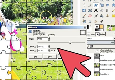 Select a piece layer, make a rectangular section and rotate it using the Rotate tool (Shift + R). Use whatever angle you like, our intention is to obtain something looking like a mess. After rotating you can also move the piece a bit.